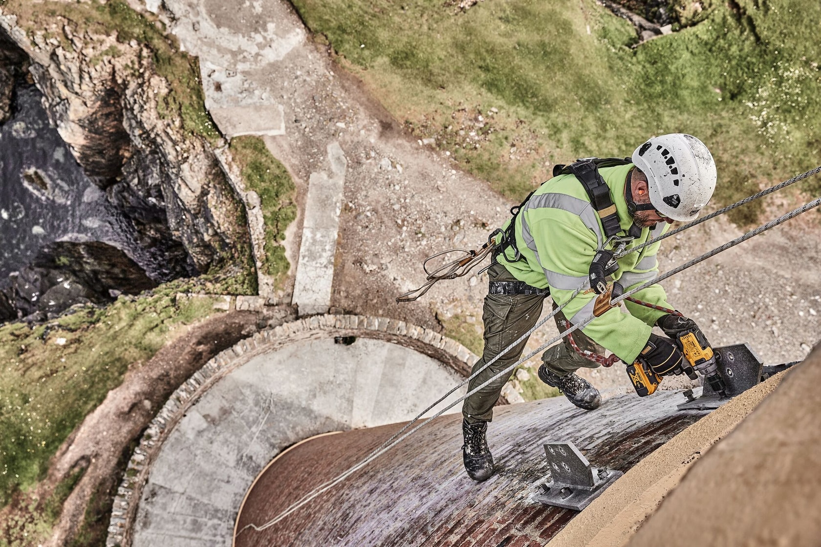 DEWALT offers products that provide the user more control in a bind-up situation than standard clutches and side handles provide. Also provided on select tools are connection options to utilize a lanyard for tethering to rigid structures on jobsites.