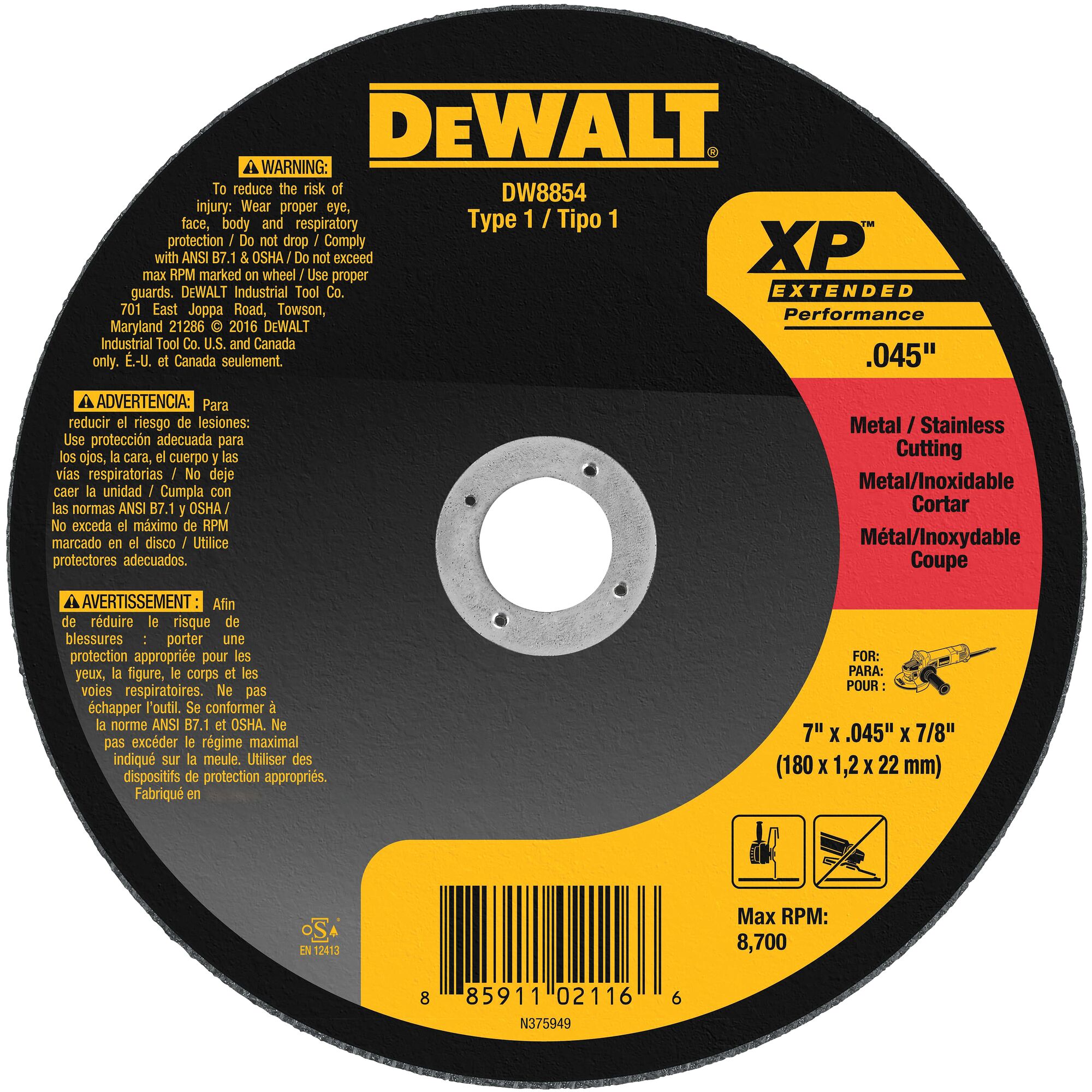 Featuring a specially treated grain combination and innovative .045” wheel design, DEWALT Type 1 XP Metal Cutting Wheels offer fast, burr-free cuts. 2 full sheets of fiberglass deliver safety and durability. An exclusive material mix ensures long wheel life.