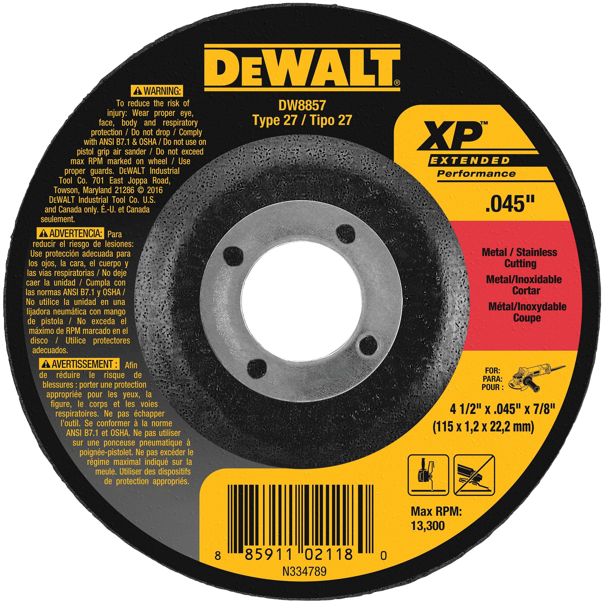 With a thin .045" wheel design for quick, burr-free cuts, DEWALT Type 27 XP Metal Cutting Wheels feature a specially treated grain combination for aggressive cutting action. 2 full sheets of fiberglass ensure durability and safety. A proprietary material mix extends wheel life.