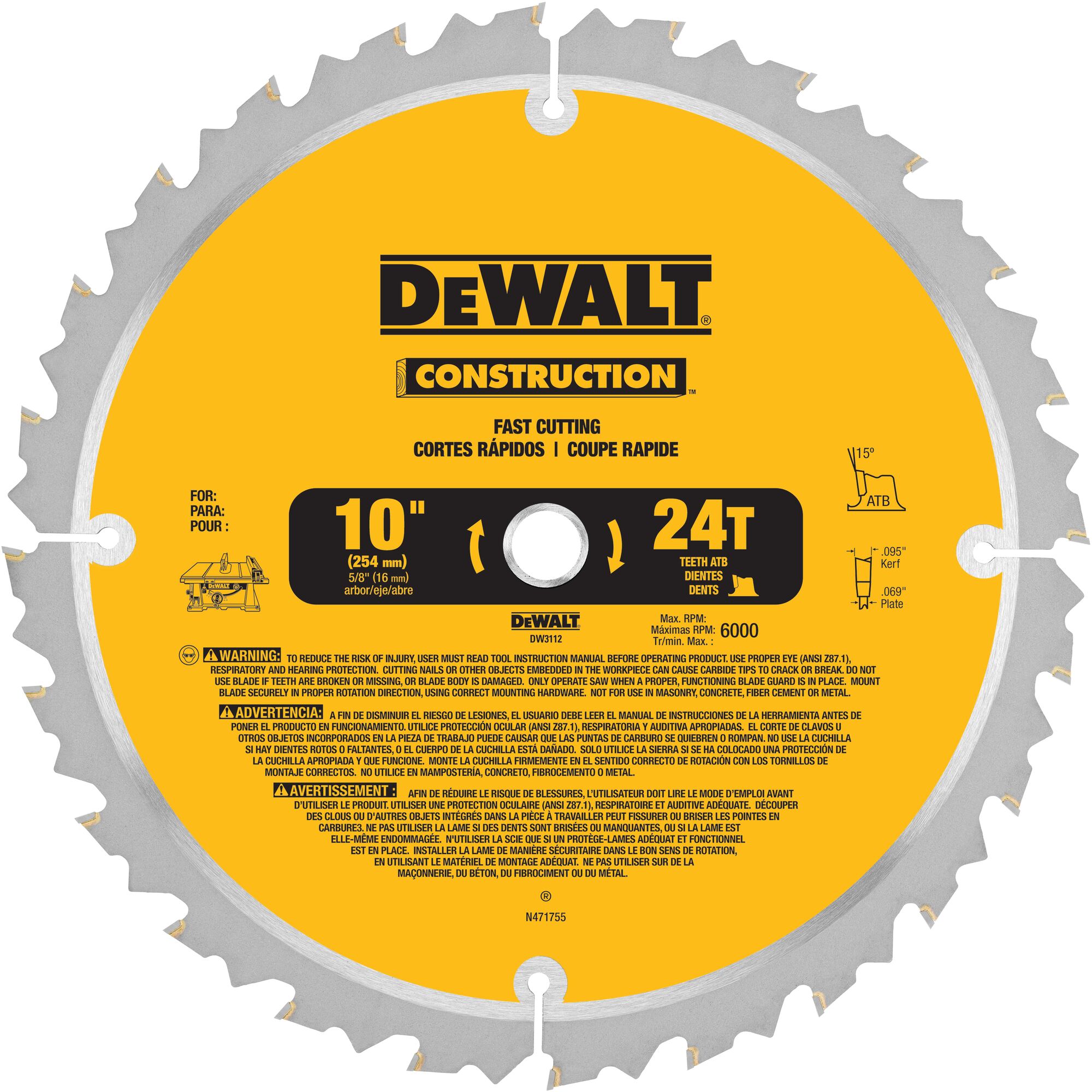 Packed with a thin kerf for fast, smooth cutting and computer-balanced plate for helps to reduced vibration, DEWALT Large Diameter Construction Saw Blades power through a range of materials with ease. An exclusive wedge shoulder design places more steel behind each tip for helps to increased durability and accuracy, while an anti-stick coating minimizes friction and gum-up. Ideal for all softwood, hardwood, chipboard, and plywood cutting applications using a table or miter saw.