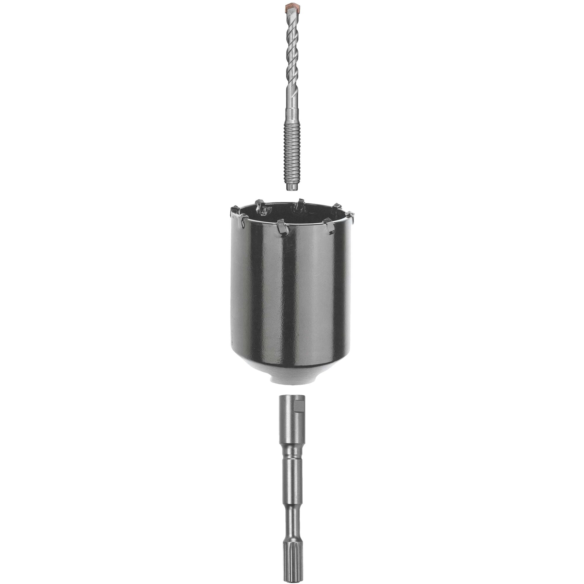 These 2-Piece Core Bits are carbide-tipped to provide maximum durability when drilling into tough materials. The center bit is replaceable for maximizing the life of the tool, and there are a variety of lengths and diameters available in both SDS Max and Spline.