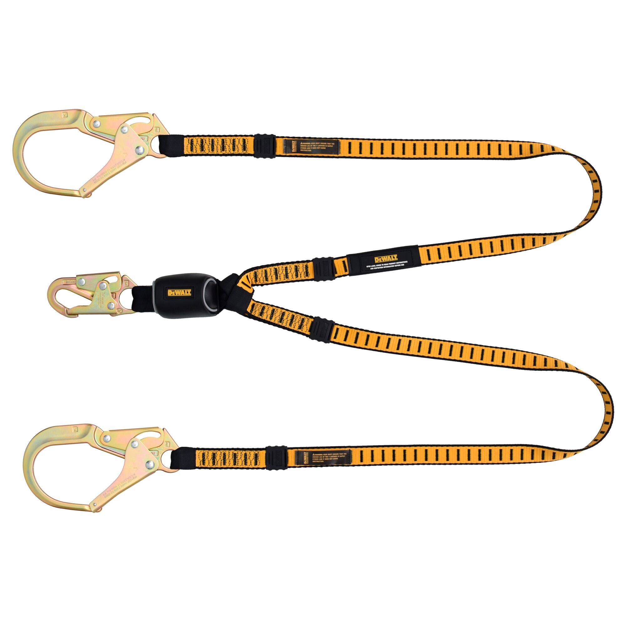 The DEWALT external energy absorbing lanyards come is a variety of styles and configurations to fit the requirements of most work situations. Available in single & twin leg, with steel & aluminum connectors.