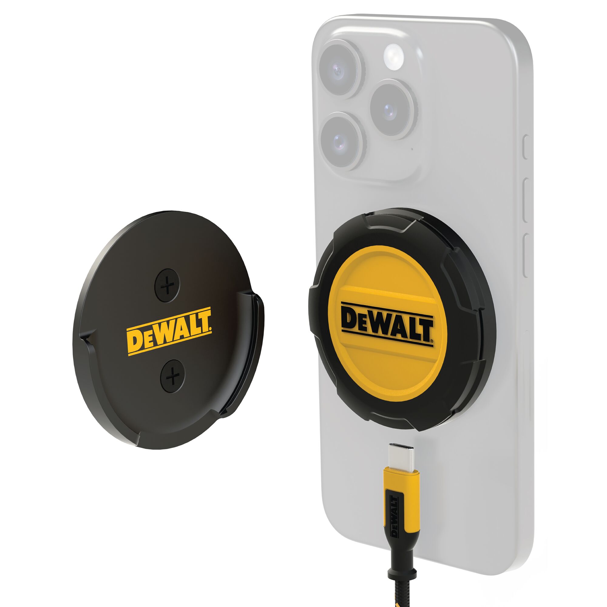 "Efficient resilience is guaranteed with our Magnetic Wireless Charger, designed to redefine your charging experience. With a slim profile and detachable Kevlar-reinforced cable, this durable device combines longevity with functionality. Equipped with 15W Fast Charging technology, it delivers lightning-fast power to your devices on any jobsite. Simply place your smartphone or AirPods on the charger, and let the magic of magnetic connectivity take care of the rest. Easy slide-in wall mount bracket and install kit included."